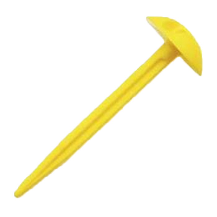 Supplied in yellow for high visibility. Green and black versions are available on inquiry. Please note that orange pegs are now discontinued. 3" Yellow Mushroom Pegs are a reliable accessory for maintaining secure and tidy ground cover installations across a wide range of professional applications.